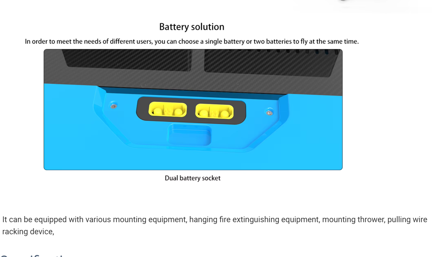 Logistics and special scenario transportation requirements: With the explosive growth of e-commerce business, the logistics industry is facing huge distribution pressure, especially in remote mountainous areas and complex terrain regions. Traditional ground transportation is difficult to meet the requirements of efficient and low-cost transportation. The 40KG load capacity can meet the transportation needs of many small and medium-sized goods and can achieve rapid "last mile" delivery. At the same time, in some special scenarios, such as scenic spots and mountain engineering construction, the 40KG dual-electric version unmanned aerial vehicle can frequently transport materials by virtue of its dual-electric endurance advantage. For example, the DJI FlyCart 30 has been applied in the Huangshan Scenic Area, solving the shortage of porters and the inconvenience of manual transportation.