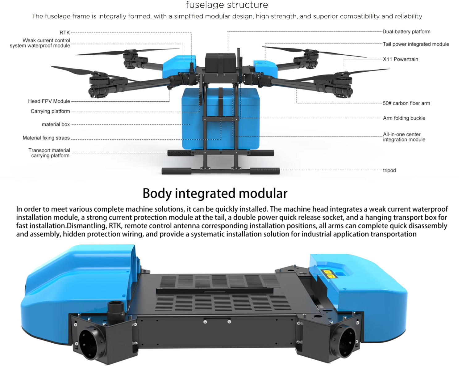Recommended configuration : flight control (optional) Powertrain: X11 Battery: 14S 30000mAh